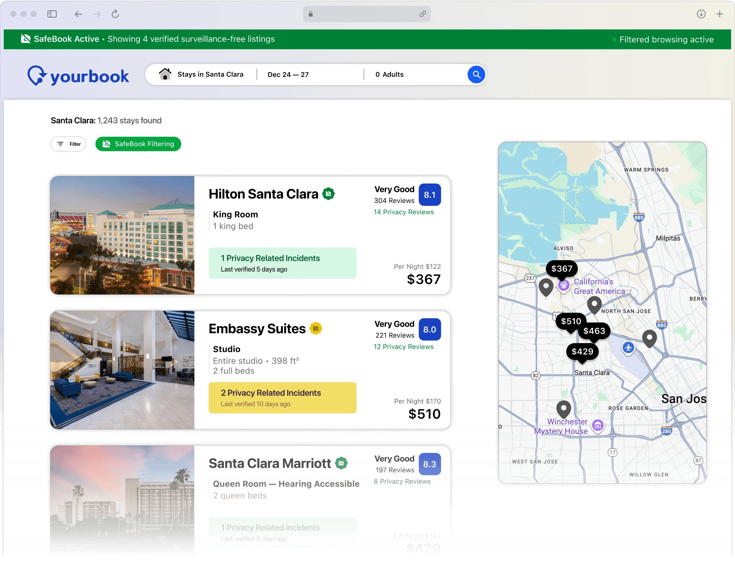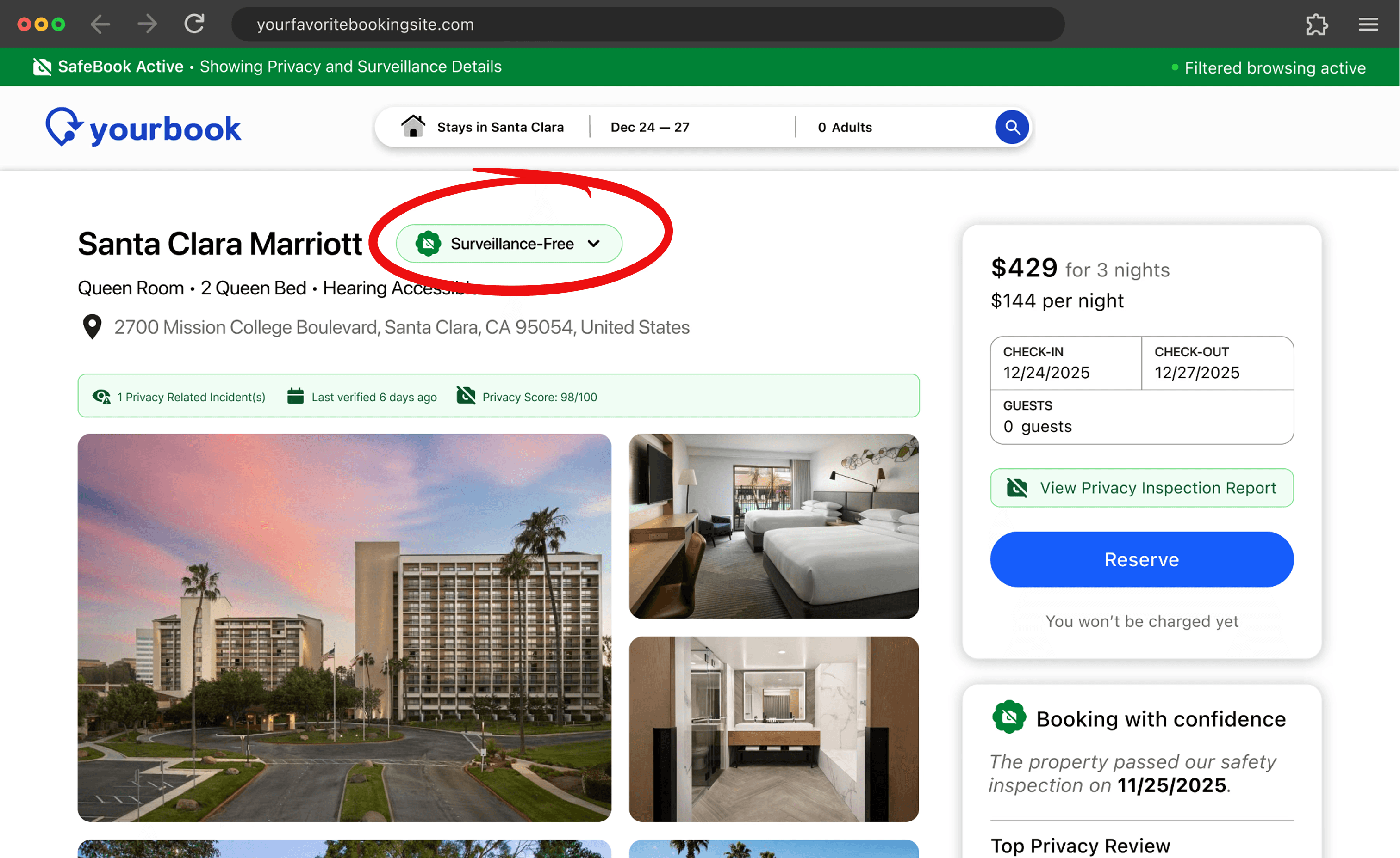 through an integrated web browser extension that appears on their preferred booking site.